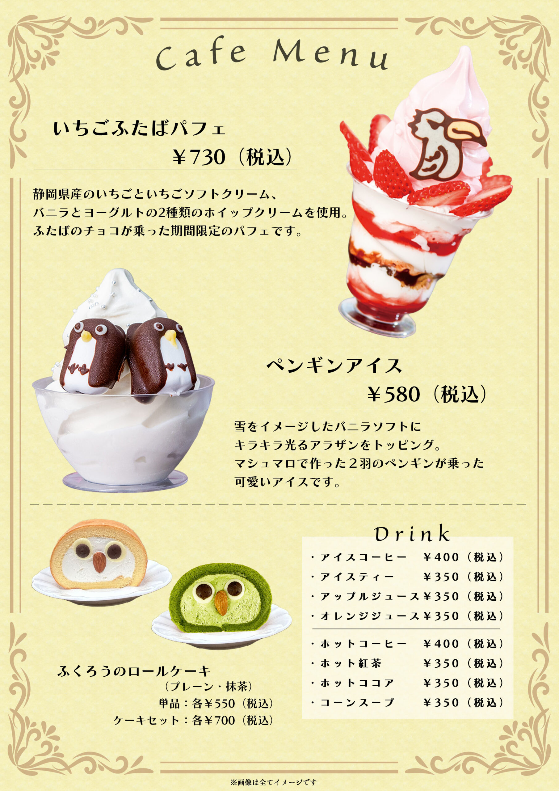 軽食やスイーツを楽しんでいただけます。生クリームがたくさん入ったロールケーキも人気です!